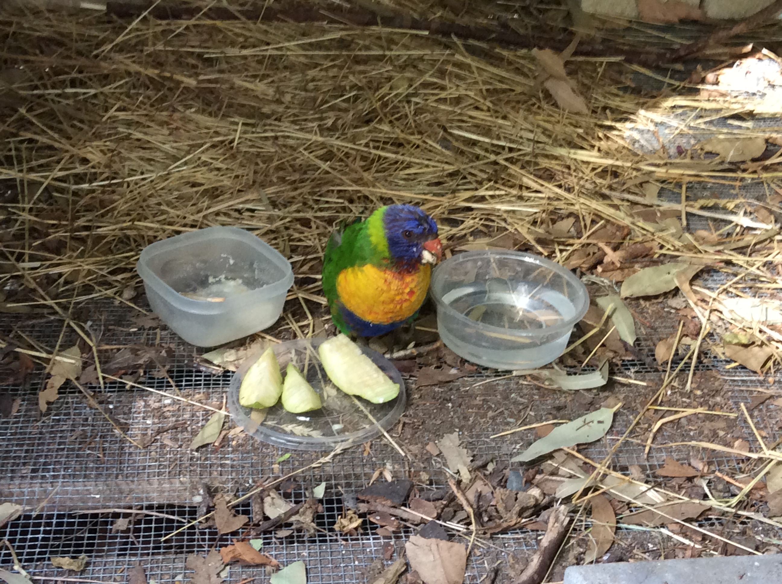 After a few weeks, close to the day we were going to release him, another lorikeet came to visit. It was on it’s own. Perhaps it wanted Bingo to be it’s mate.